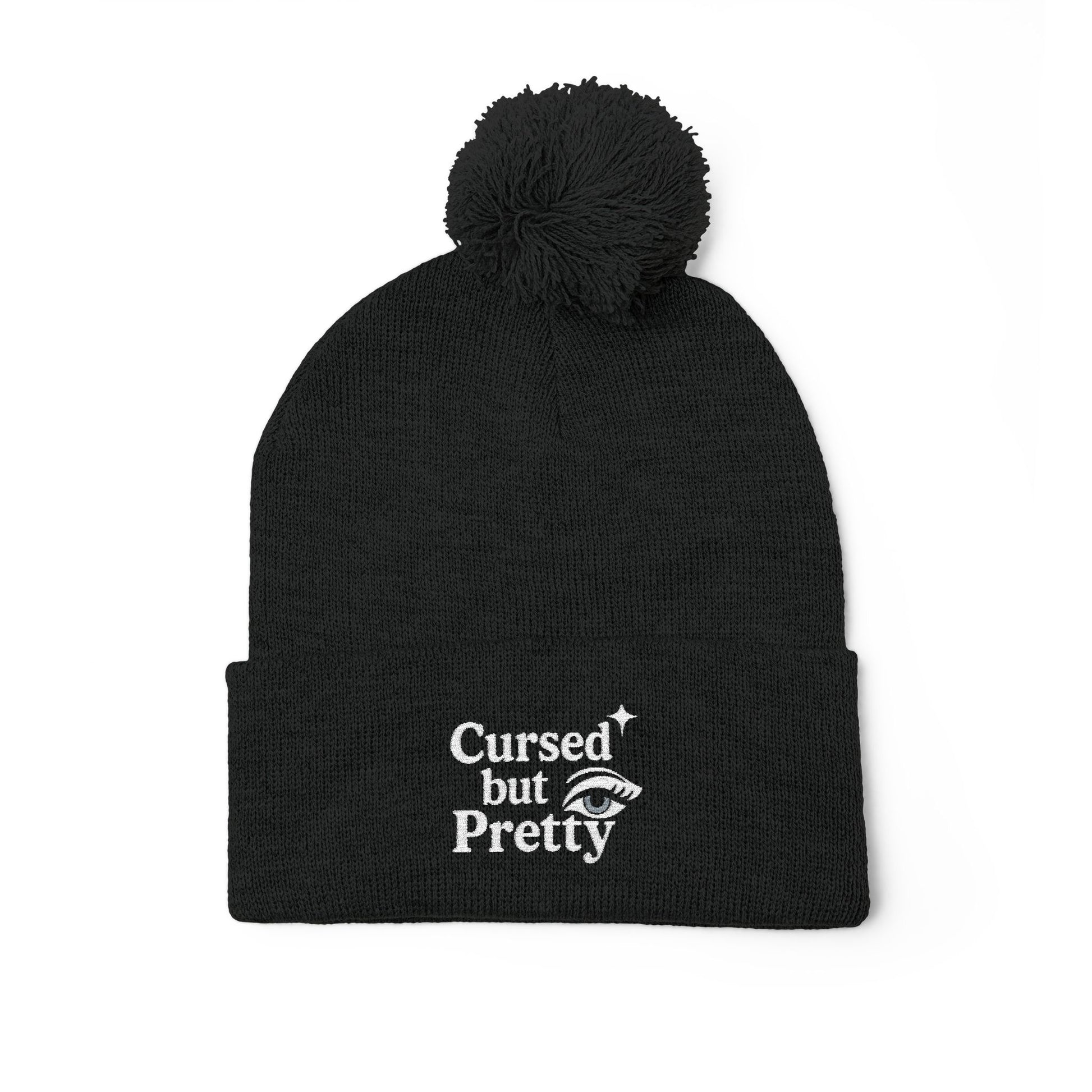🖤 Cursed but Pretty™ Pom Pom Beanie